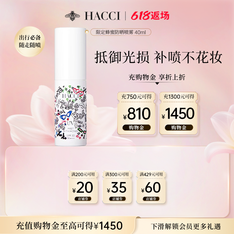 HACCI限定防曬噴霧40ml面部便攜物理防曬不油膩全身用旗艦店正品
