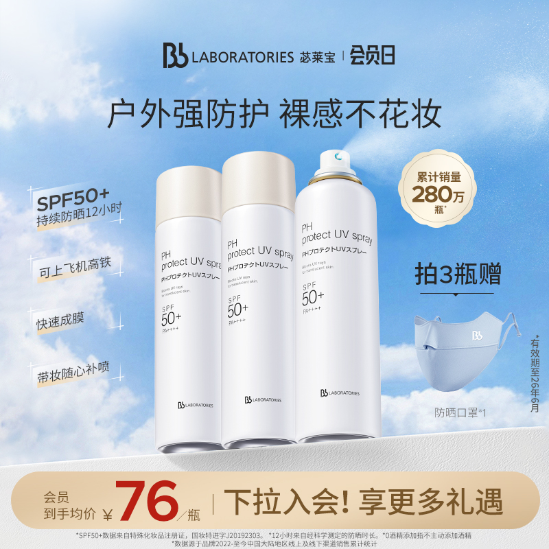 BbLAB苾萊寶防曬噴霧裸感防汗水紫外線清爽可上飛機高鐵3瓶裝
