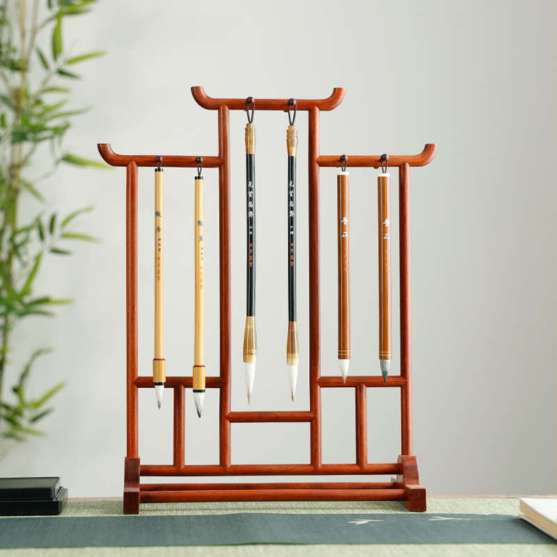六品堂 清林筆架 花梨木毛筆架實木筆掛新中式多功能文房四寶桌面收納置物架學生書法專用收納架創意擺件