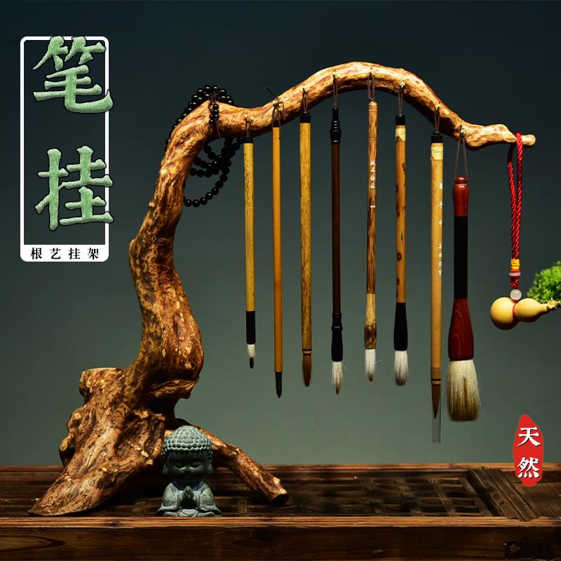 創意收藏款實木根雕筆架子毛筆掛架展示架天然復古木架書法中國風