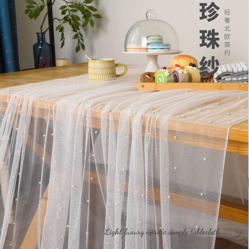 速發桌布小清新白紗珍珠紗甜品臺裝飾簡約唯美輕奢背景紗美甲拍照