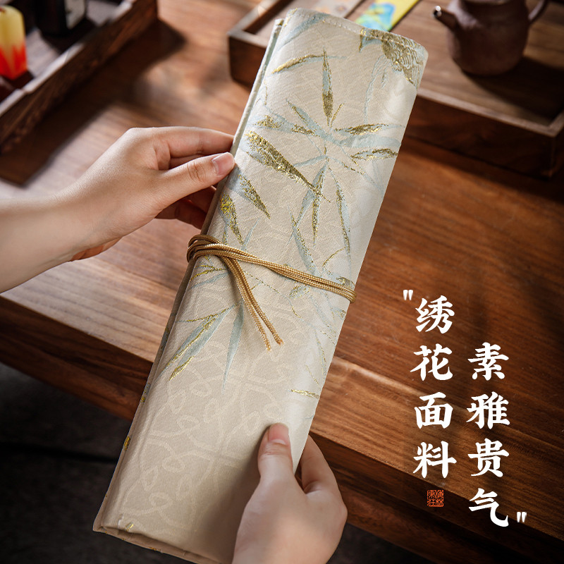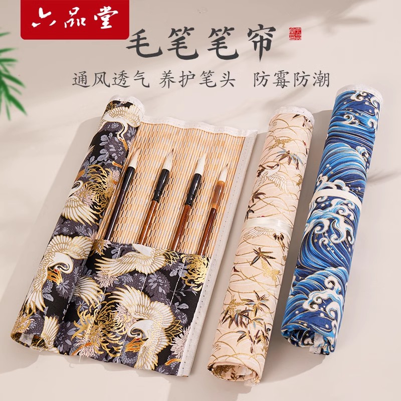 六品堂 韻悠 筆簾純手工便攜筆簾筆袋國畫精致毛筆筆簾收納文房雅物國畫筆袋毛筆收納袋送禮文房旅行筆袋