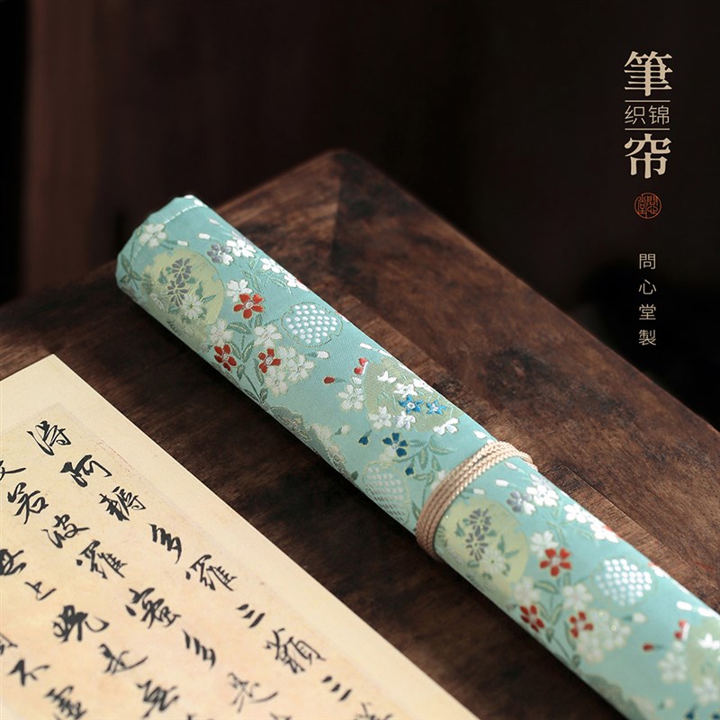 問心堂布藝筆簾毛筆袋書法收納筆簾筆卷織錦筆簾文房四寶用品書法