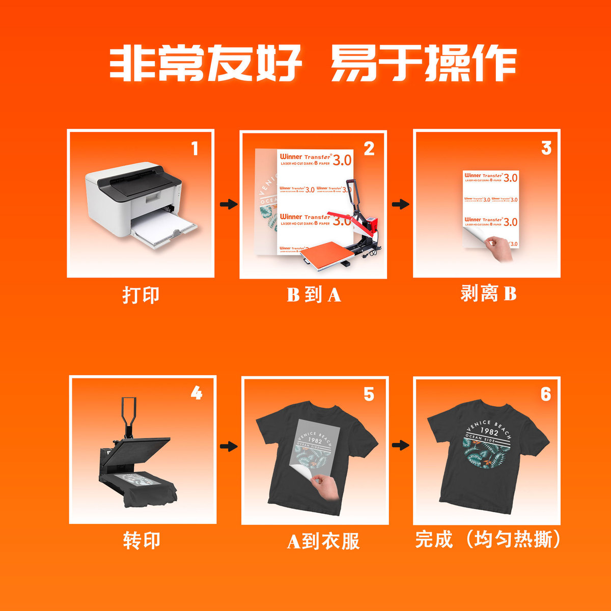 WT贏家轉印A4化纖深色熱轉印紙不透底深色熱升華紙適用于所有面料