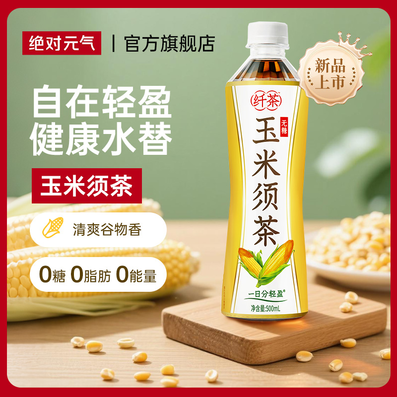 絕對元氣纖茶玉米須茶無糖植物飲料0糖0脂肪0能量500ml/瓶飲料