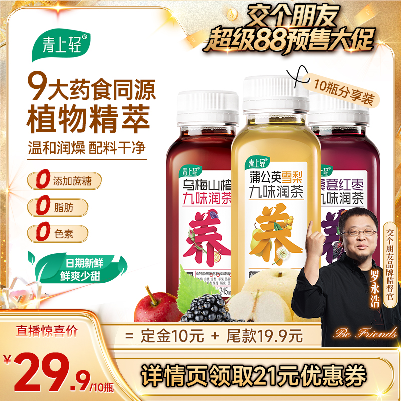 【5日晚8付定 先加購】青上輕烏梅山楂雪梨桑葚九味245ml*10瓶