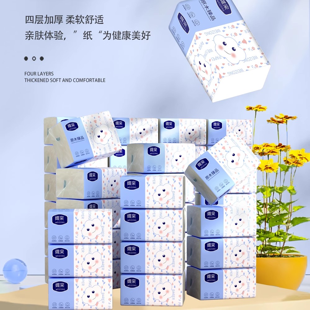 維宗抽紙4層大包加厚可濕水紙巾家用實惠裝衛生紙面巾紙嬰兒擦手