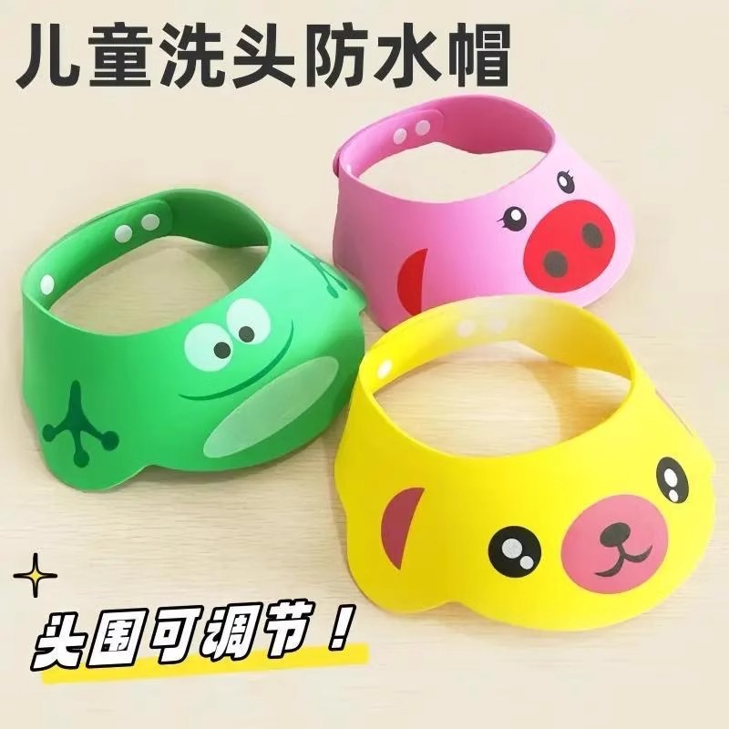 兒童浴帽嬰兒洗發帽黃狗 粉豬 綠青蛙防護帽可調節洗澡洗頭護耳帽