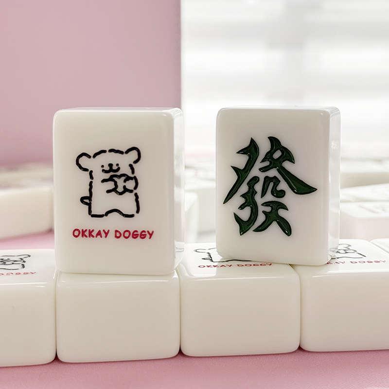 家用麻將手搓牌卡通晶玉可愛okkay小狗宿舍中大40/42/44號麻雀牌
