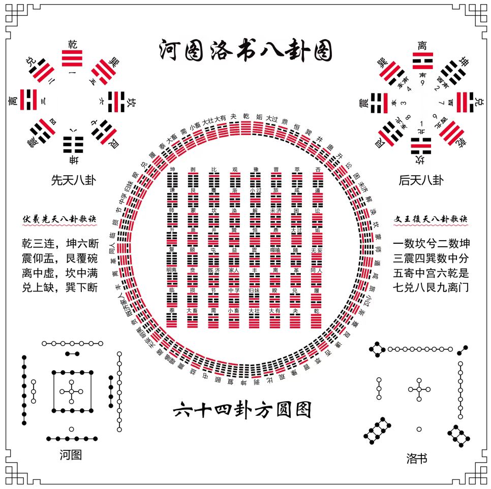 彩印先天八卦圖皮革河圖洛書64卦方圓圖易經六十四卦周易入門掛畫