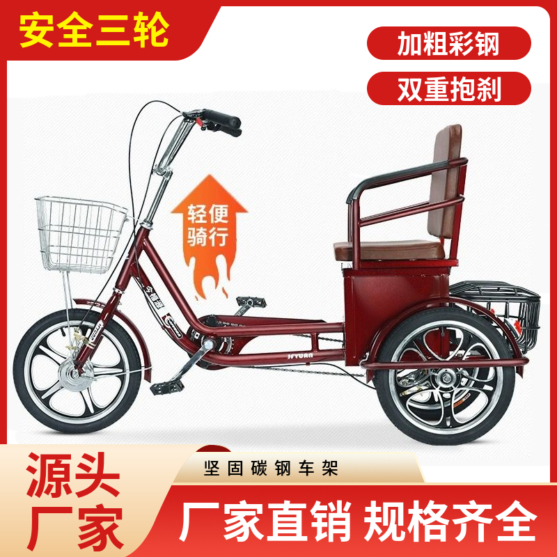 老人腳踏成年人力三輪車自行休閑出行車買菜車老年代步三輪車腳蹬