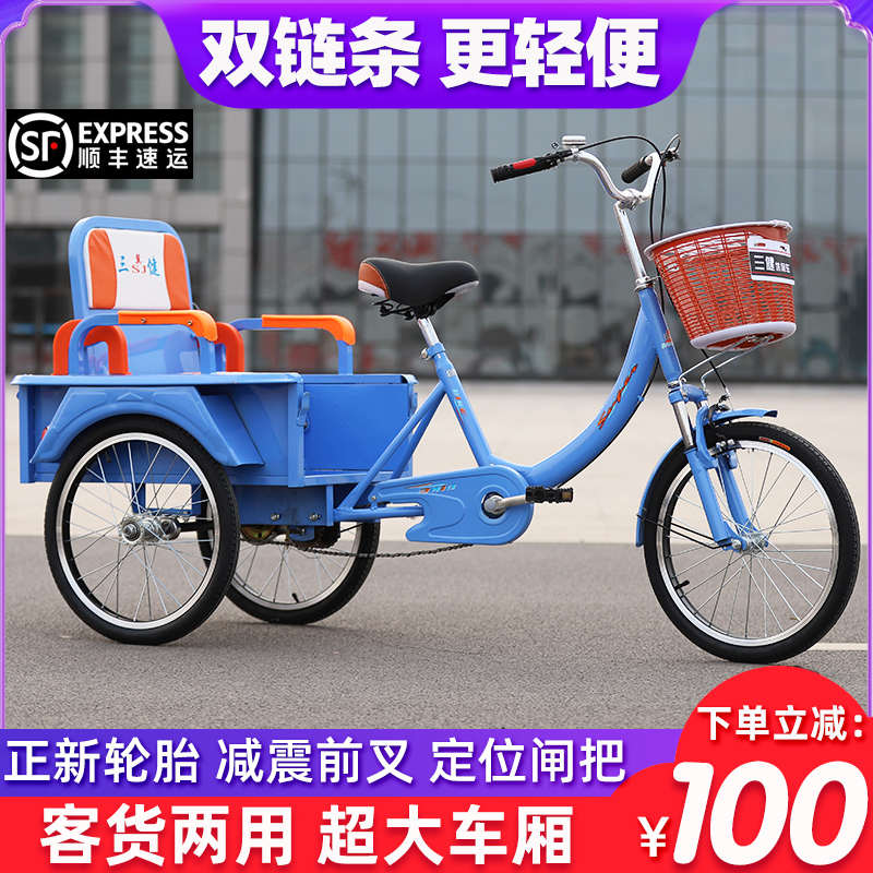速發三健新款老年人力三輪車老人代步三輪車接送小孩子腳蹬成人三