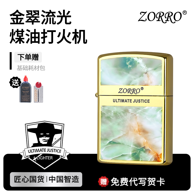 ZORRO佐羅官方旗艦店正品煤油打火機原銅金翠流光送男友禮物