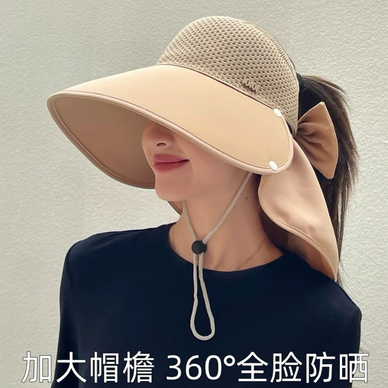 大帽檐防曬帽女夏季遮臉防紫外線太陽帽可扎馬尾半空頂護頸遮陽帽