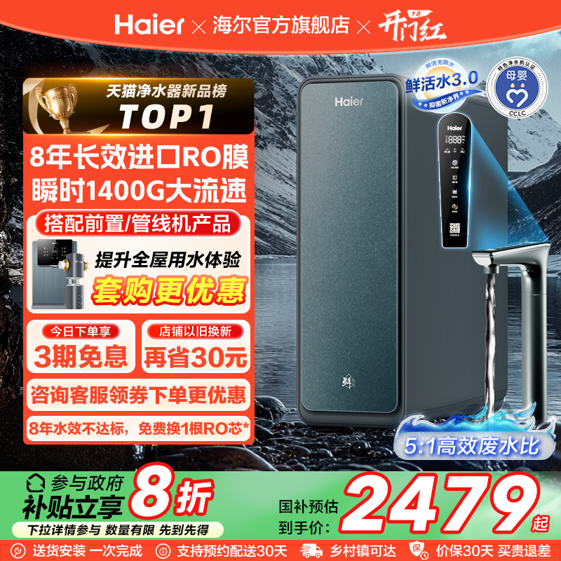 【政府補貼】海爾鮮活水PRO1200G凈水器廚衛直飲家用凈飲機R762