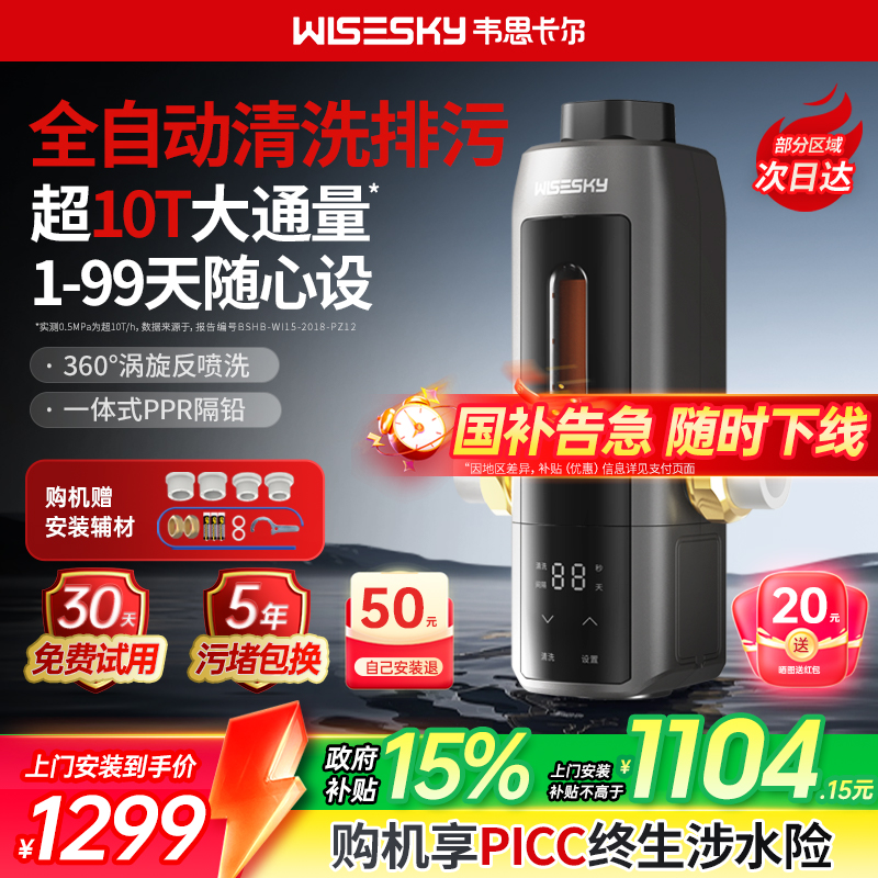 韋思卡爾全自動反重力前置過濾器家用自動反沖洗凈水器WSP-80TPro