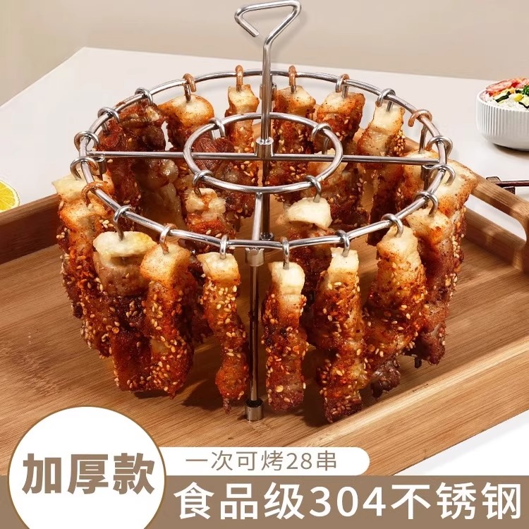 空氣炸鍋燒烤架立式燒烤架烤箱不銹鋼圓形烤串烤肉吊掛專用立式架