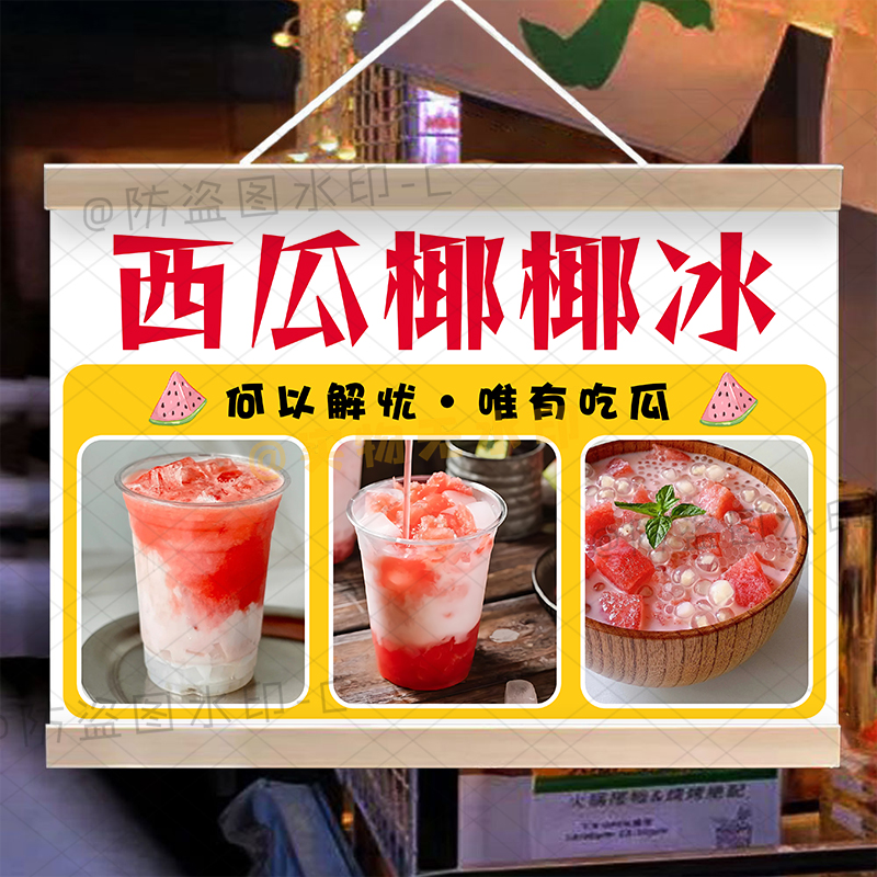 冰鎮西瓜鮮榨果汁汁掛畫西瓜椰椰冰擺攤廣告布移動攤位防水招牌