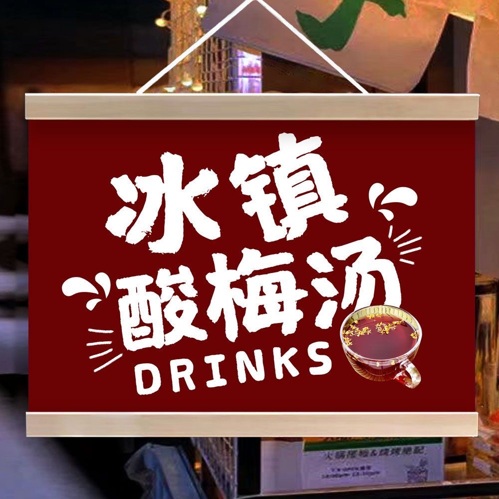 冰鎮酸梅湯掛畫古法熬制廣告夜市街邊擺地攤裝飾小招牌油畫布防水