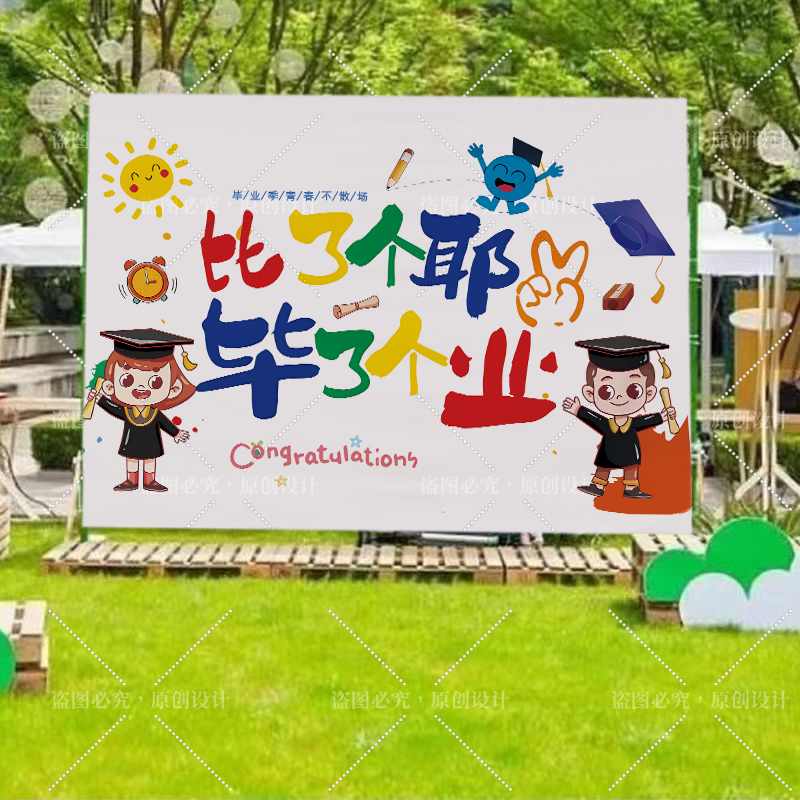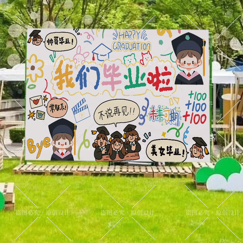 幼兒園畢業季背景布戶外校園拍照派對氛圍裝飾布畢業典禮布置掛布