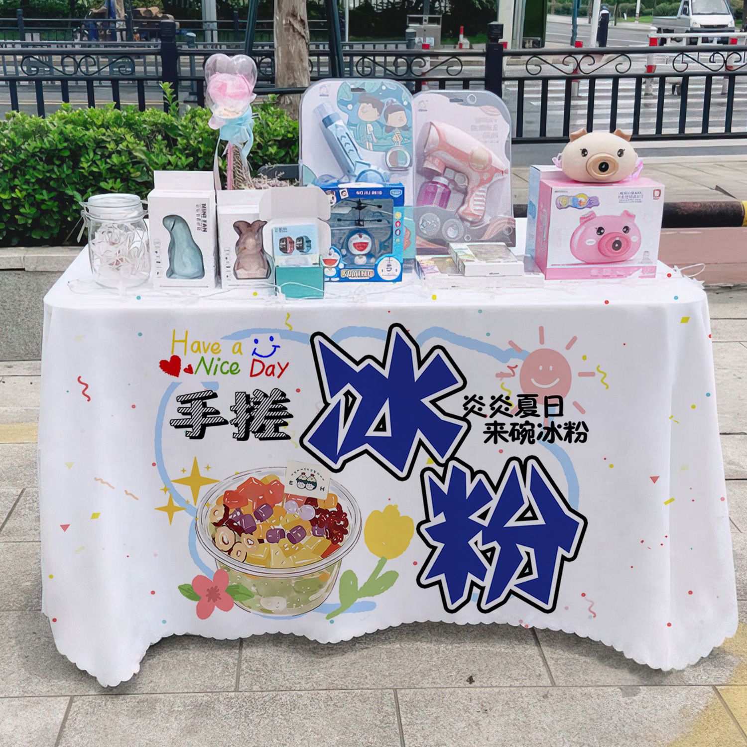 街邊擺攤桌布網紅夜市冰粉廣告布臺布集市地攤布擺攤掛布桌布定制