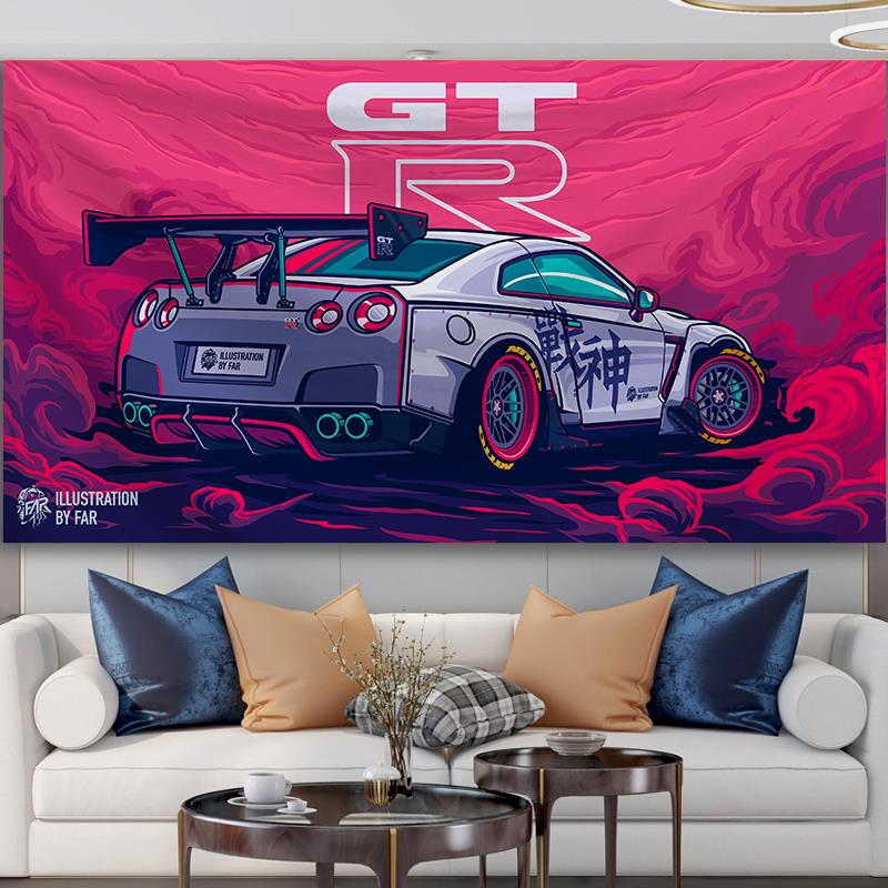 跑車插畫周邊海報背景布尼桑GT-R寶馬保時捷911裝飾房間掛毯掛布