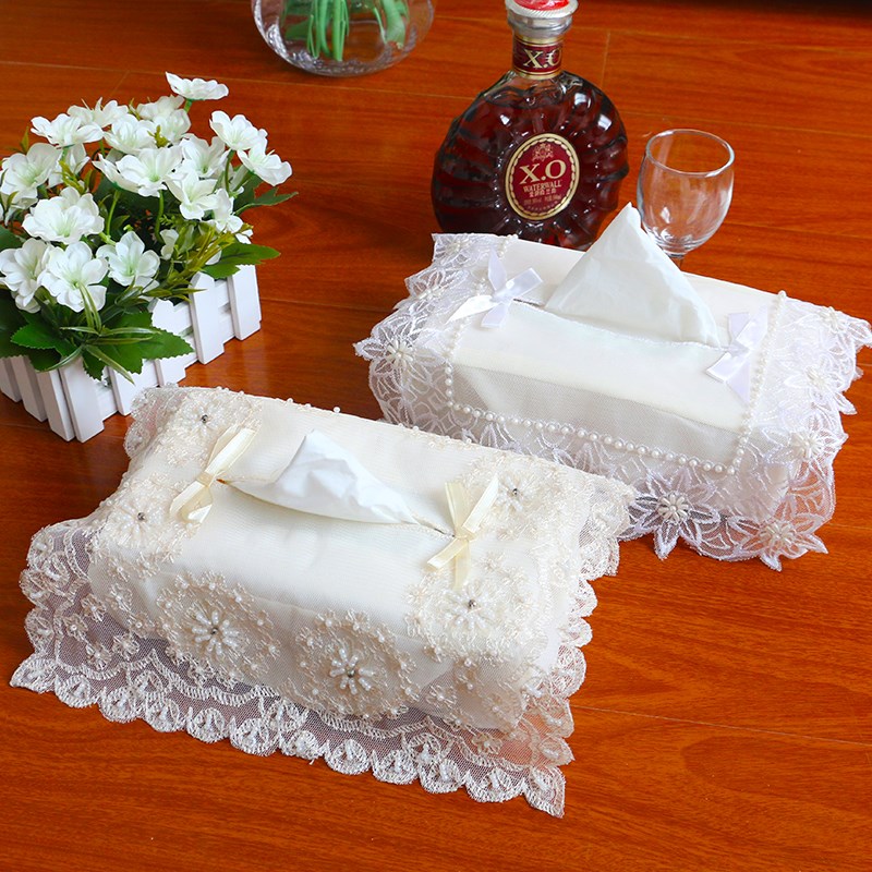 韓式蕾絲釘珠紙巾盒套歐式布藝創意客廳車載餐巾抽取式紙巾盒套