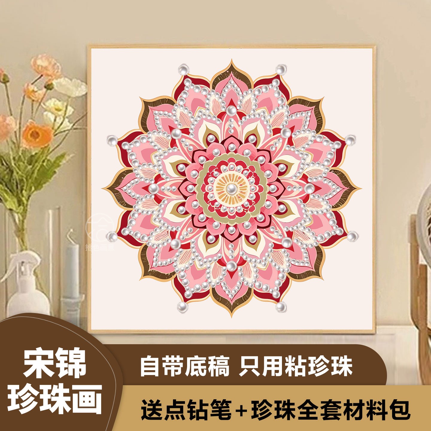 蓮花紋高級感宋錦珍珠畫diy材料包成人非遺手工活動客廳數字油畫