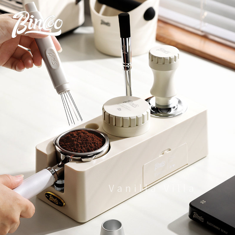 Bincoo咖啡壓粉底座壓粉錘布粉器敲渣桶手柄器具收納咖啡工具全套