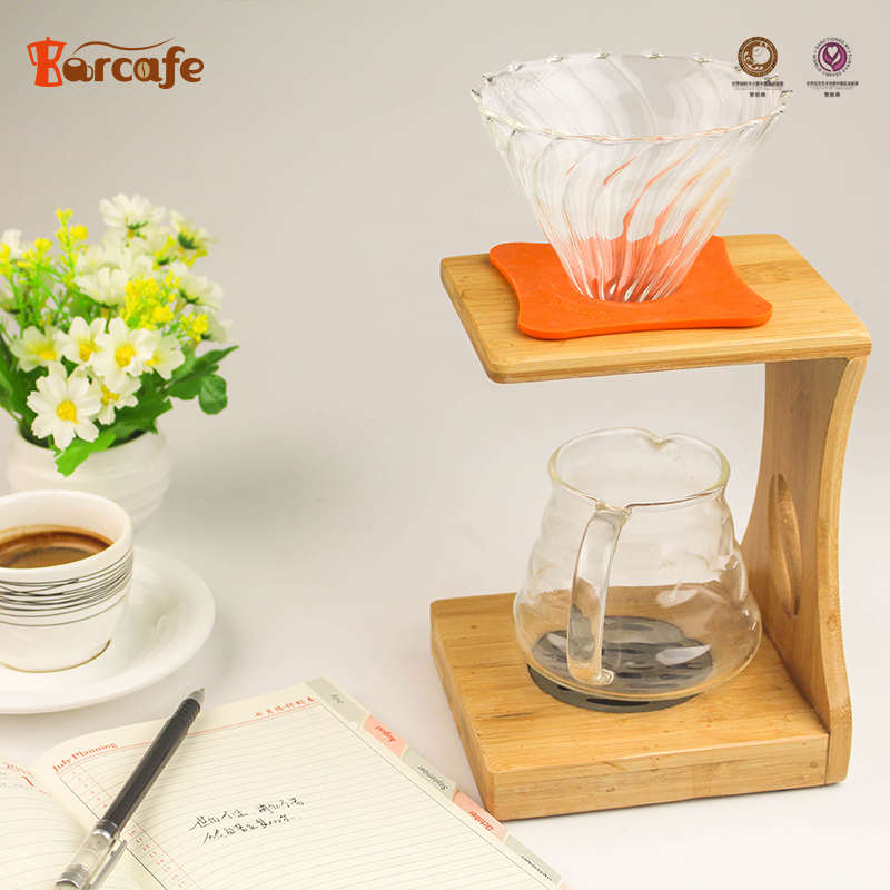 手沖玻璃實木架咖啡濾杯V60沖杯加厚過濾滴濾杯分享壺勻杯云朵壺