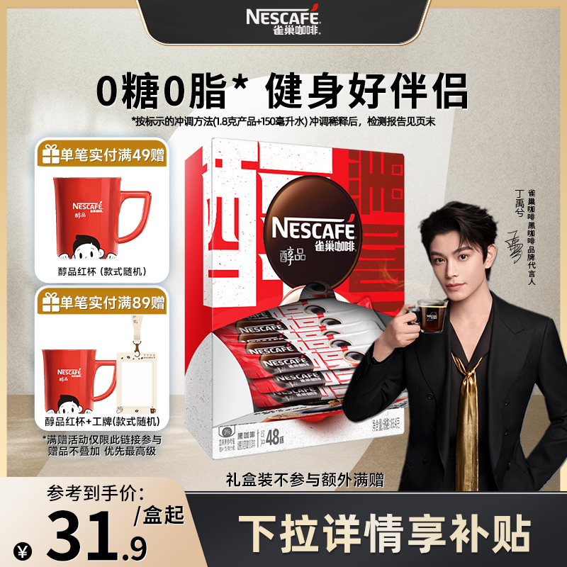 【代言人丁禹兮同款】雀巢絕對深黑咖啡美式無糖0脂速溶旗艦店