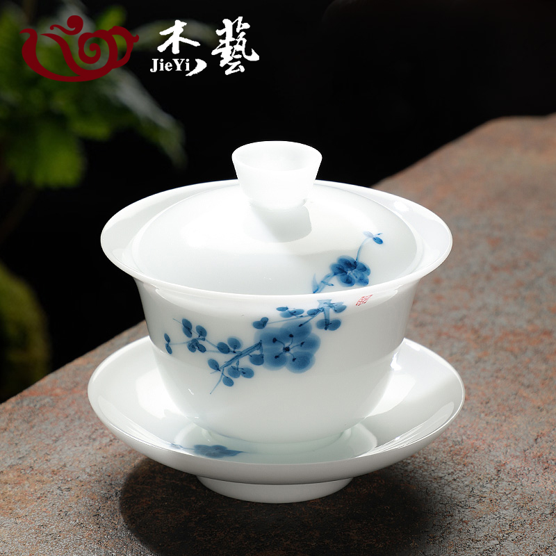 冰種羊脂玉瓷蓋碗茶杯單個高檔德化白瓷三才茶碗中式手繪泡功夫茶