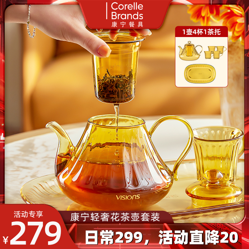 康寧茶具套裝2025新款晶盞花茶壺玻璃茶具家用高檔輕奢女士精致