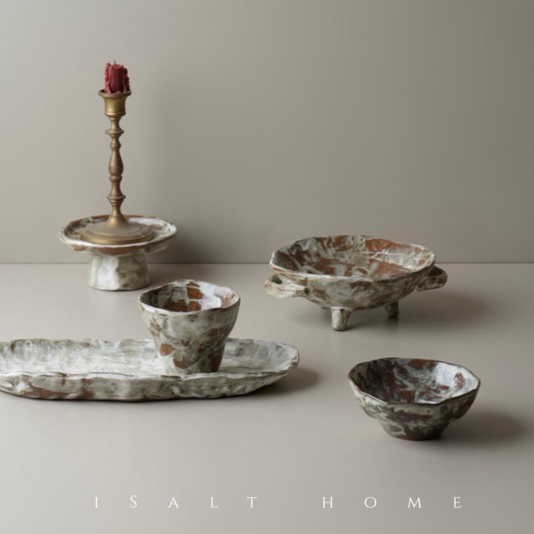iSalt原創有夏若拙粗陶手作系列主人杯碗盤侘寂風復古創意餐具