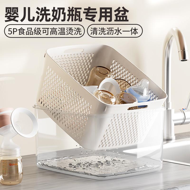 洗奶瓶專用盆嬰兒5P食品級燙洗奶瓶清洗盆瀝水籃防塵收納一體帶蓋