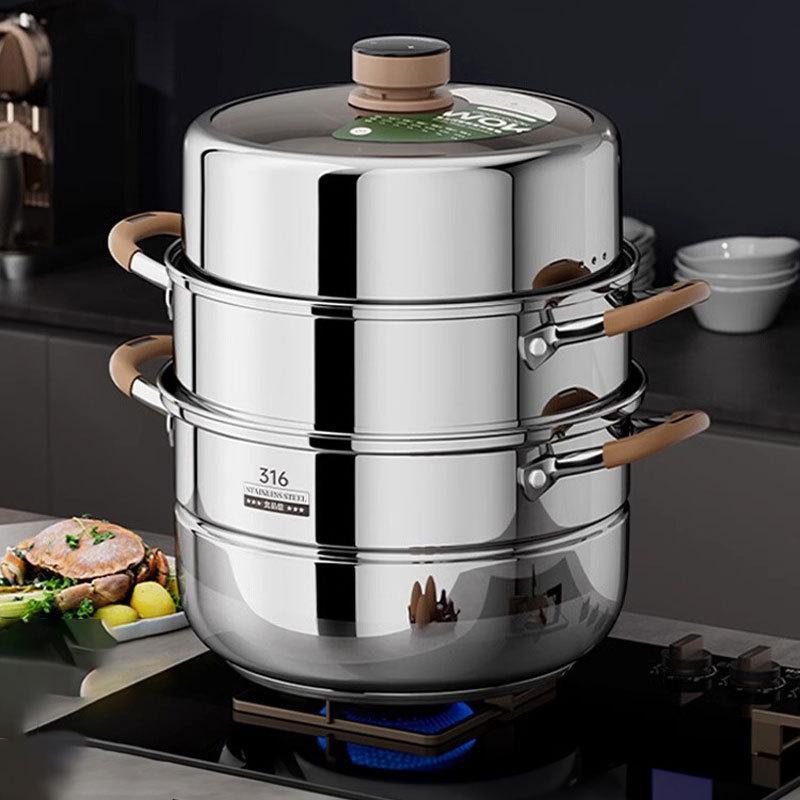 加厚316L不銹鋼定時蒸鍋蒸饅頭電磁爐燃氣灶大容量家用多層蒸籠屜