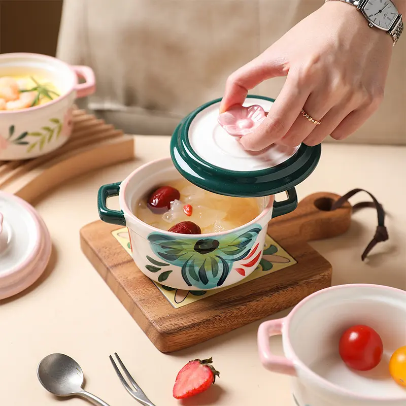 出口陶瓷帶蓋蒸蛋碗家用隔水燉盅小湯盅創意雙耳甜品小碗