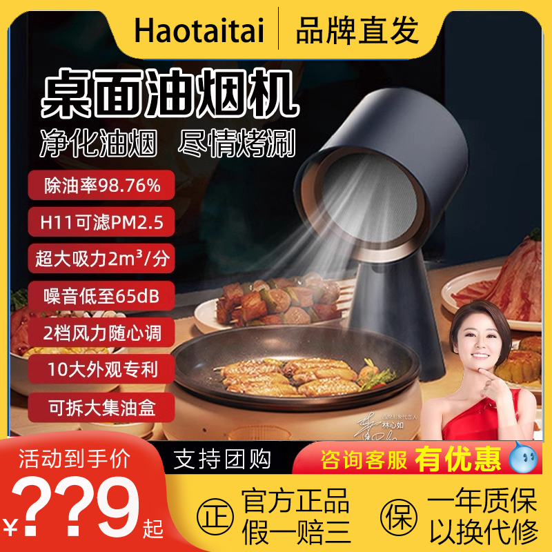 Haotaitai桌面吸油煙機家用便攜式小型迷你大功率火鍋烤肉抽油機
