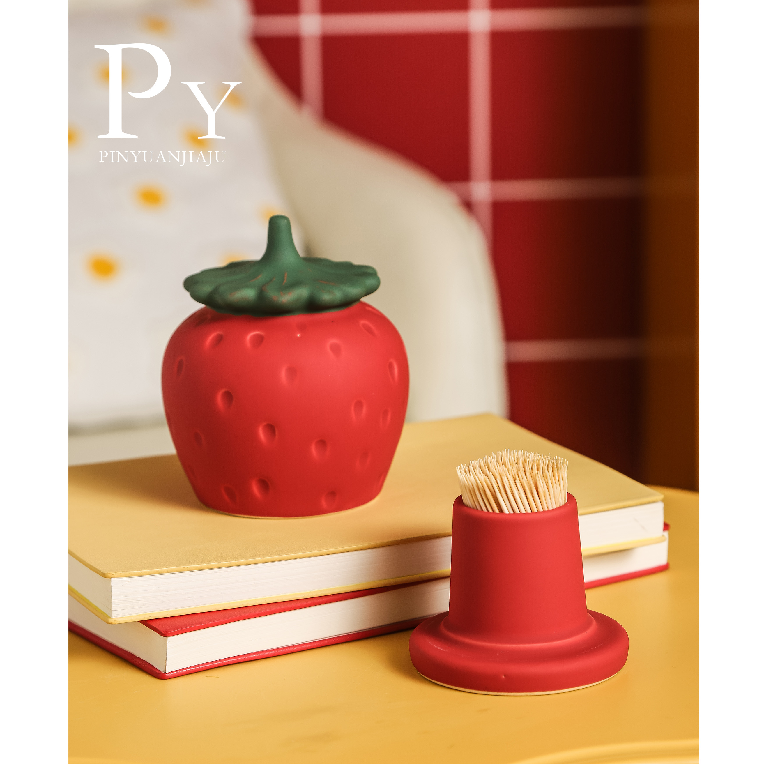 創意牙簽草莓牙線牙簽筒牙簽罐高顏值家居陶瓷收納罐裝飾擺件