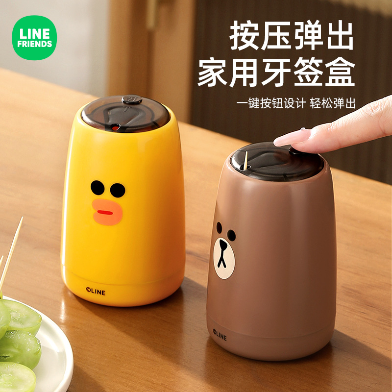 LINE FRIENDS按壓式牙簽盒自動彈出便攜牙簽筒餐廳家用牙簽收納罐