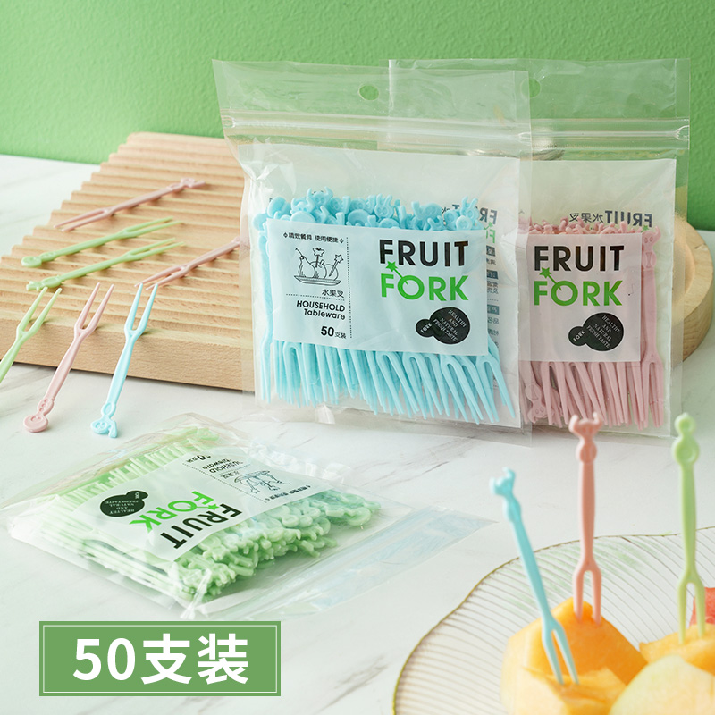 水果叉套裝水果簽一次性塑料兩齒家用吃水果蛋糕甜品叉點心小叉子