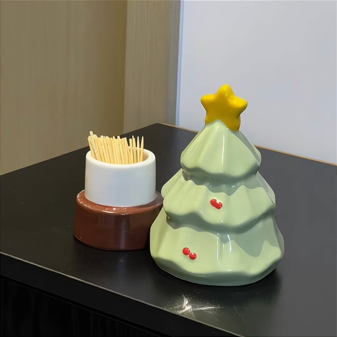【新家的100個快遞】圣誕樹牙簽筒陶瓷高顏值可愛創意擺件牙簽盒