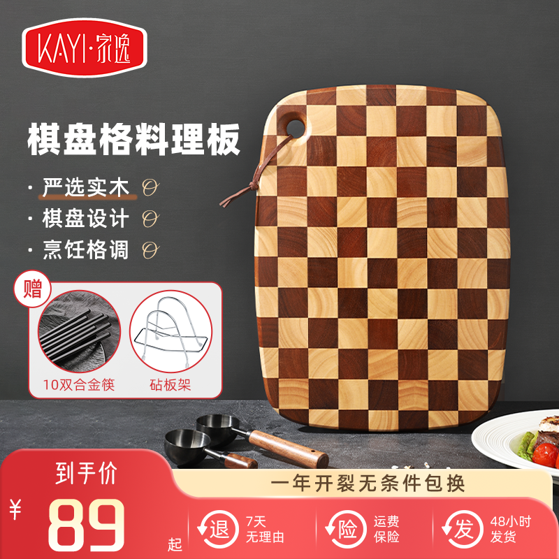 家逸棋盤格切菜板實木砧板家用嬰兒輔食切菜板廚房粘板防霉案板