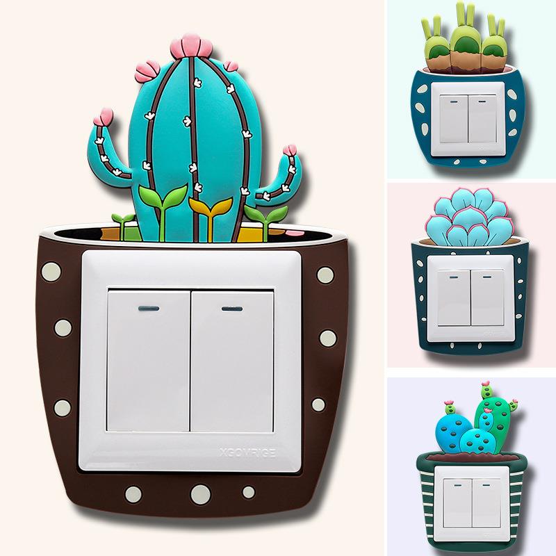 自有版權 開關貼夜光立體軟膠開關墻貼保護套墻壁裝飾多肉創意