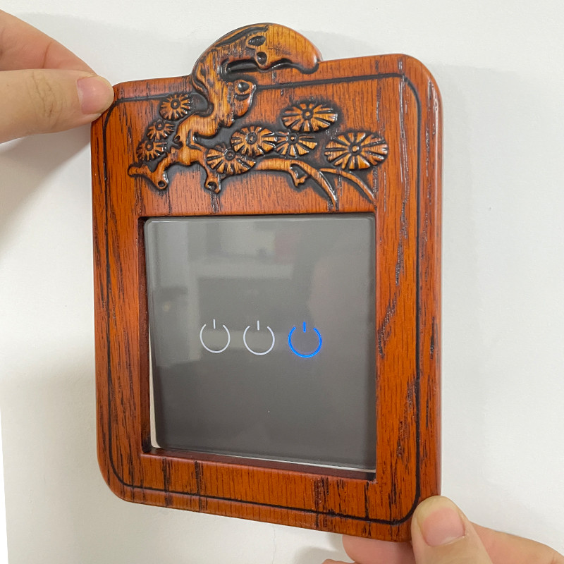 實木開關貼保護套新中式插座開關裝飾墻貼面板實木雕刻開關保護貼