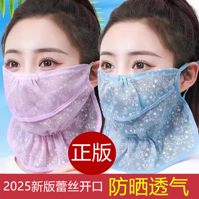 新款輕薄透氣夏季冰絲口罩防紫外線電動車開口騎行防曬面罩遮臉女