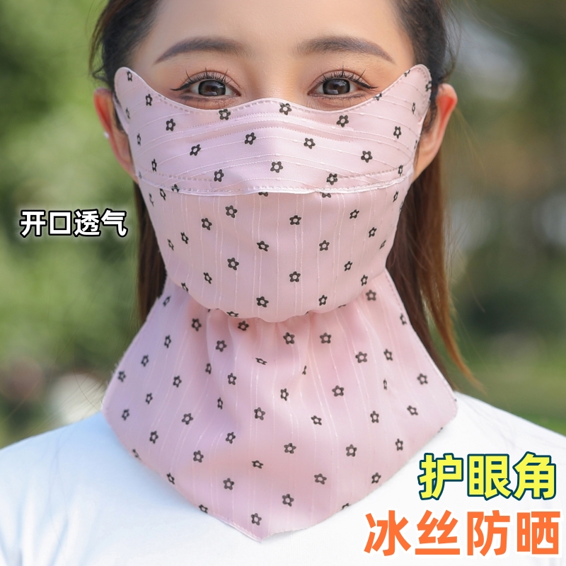 夏季防曬口罩透氣加大護頸防紫外線女士騎行防曬防護遮陽面紗面罩