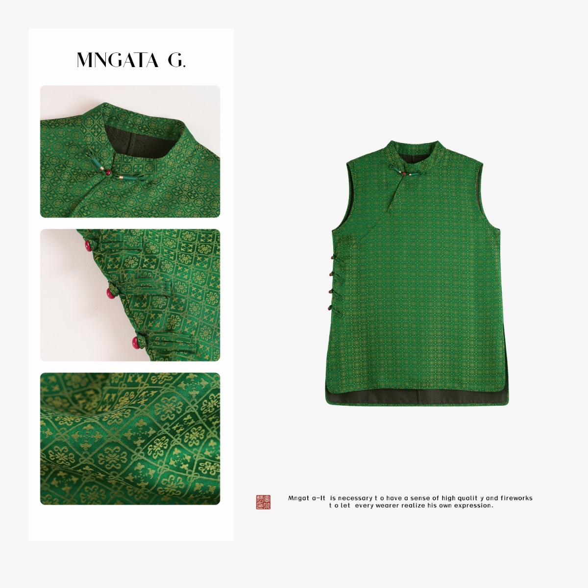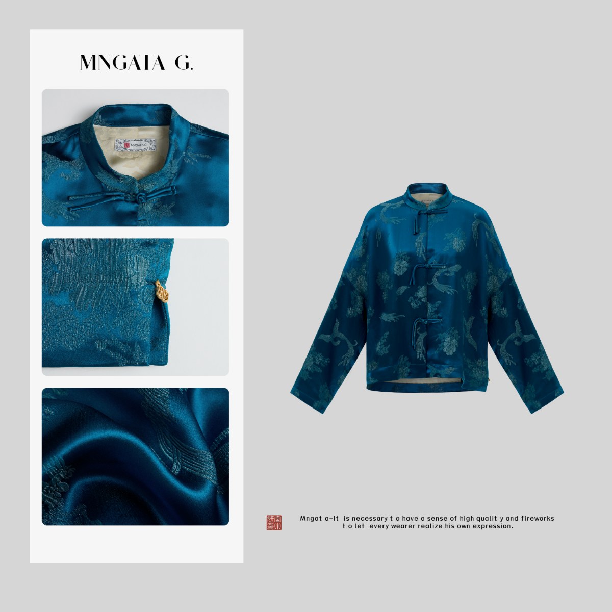曼加塔【冠樂縐·孔雀藍】桑蠶絲夏日中式國風外套5031766