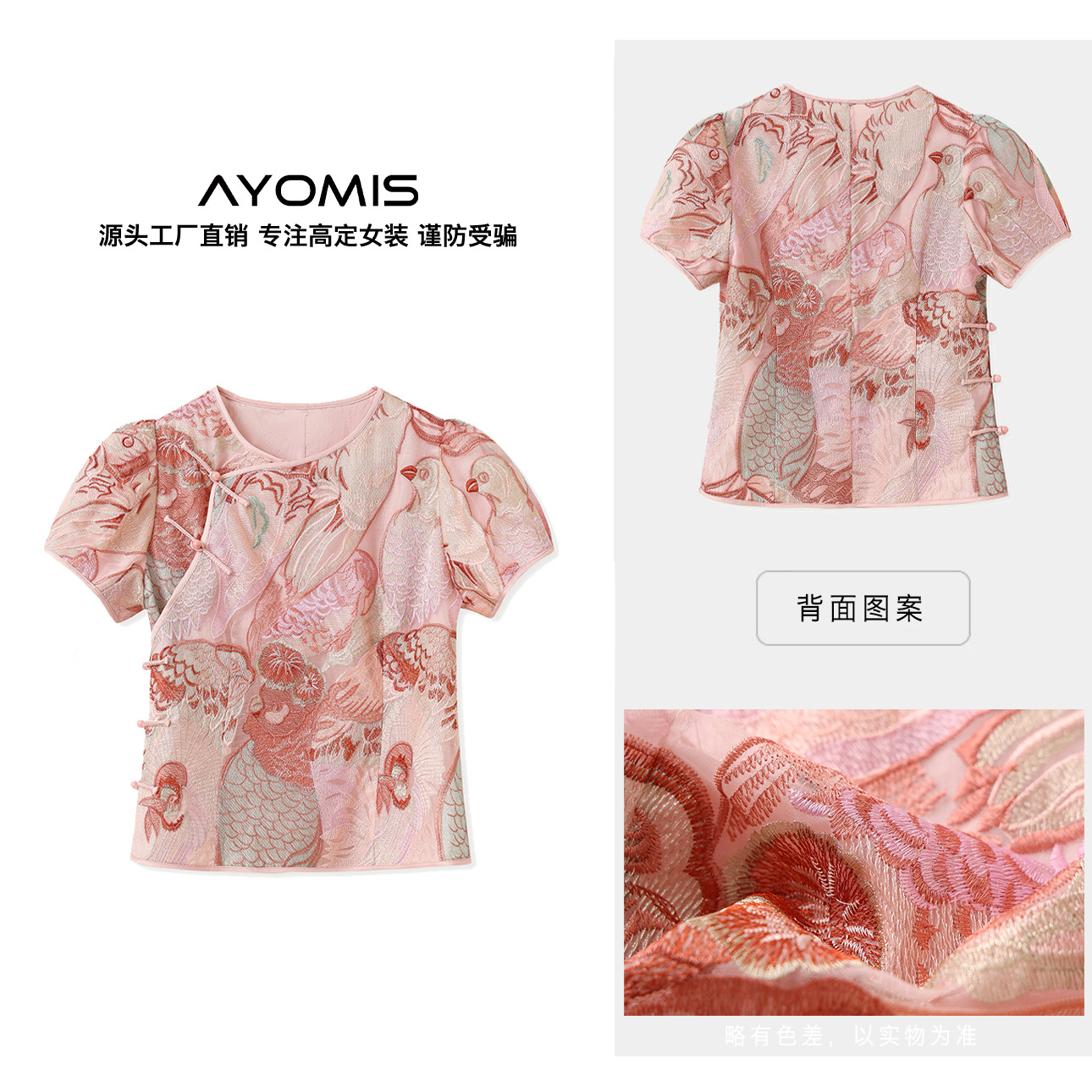 【AYOMIS】新中式氣質刺繡上衣2025夏季新款國風五彩鸚鵡真絲襯衫