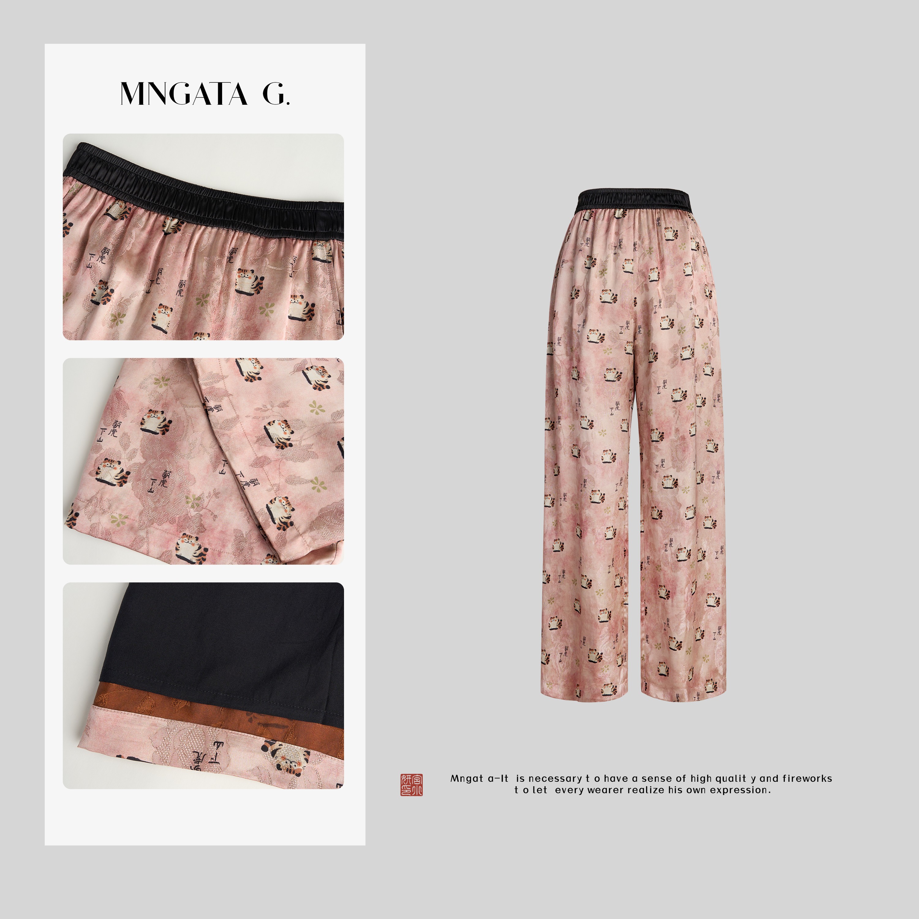 MNGATA G曼加塔【云衫褲】輕奢新中式國風提花寬松闊腿休閑長褲女